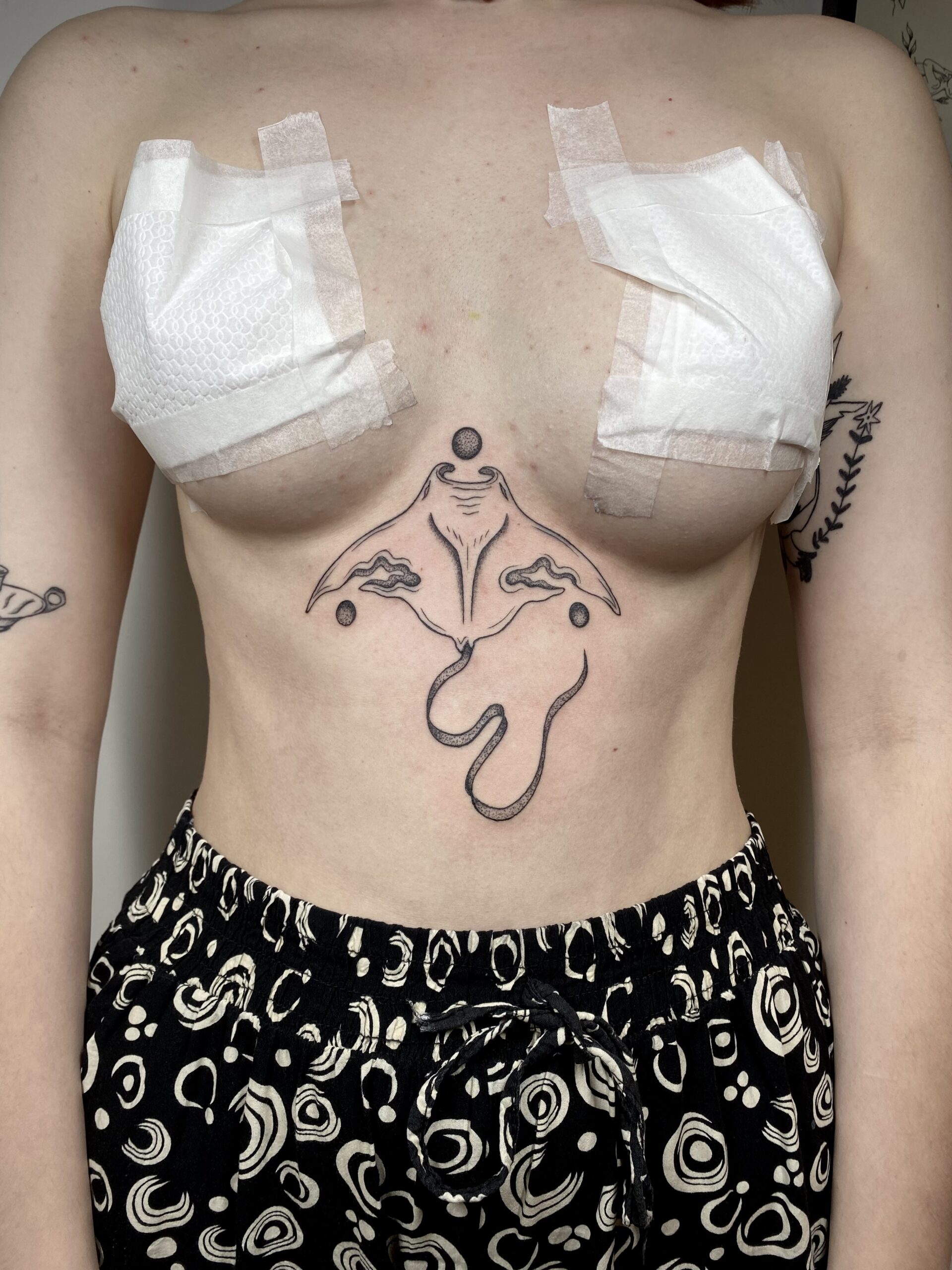 Je développe de plus en plus le tatouage instinctif, cela ressemble à de l’abstrait j’y ajouter après coup, mon style expliqué ci-dessus. De plus, je collabore avec différents artistes afin de vous proposer différents styles de flash comme de l’illustration, de la bd, de la sérigraphie, de la gravure…
